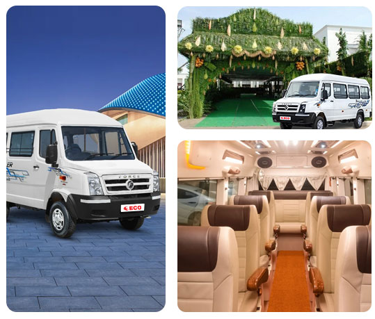 For larger wedding parties, such as big joint families or groups travelling for pre-wedding events, the 20-seater luxury tempo traveller is the best choice. With spacious interiors, high roofs, comfortable seats, AC, and neatly designed layouts, everyone can enjoy a smooth ride to and from the wedding functions.